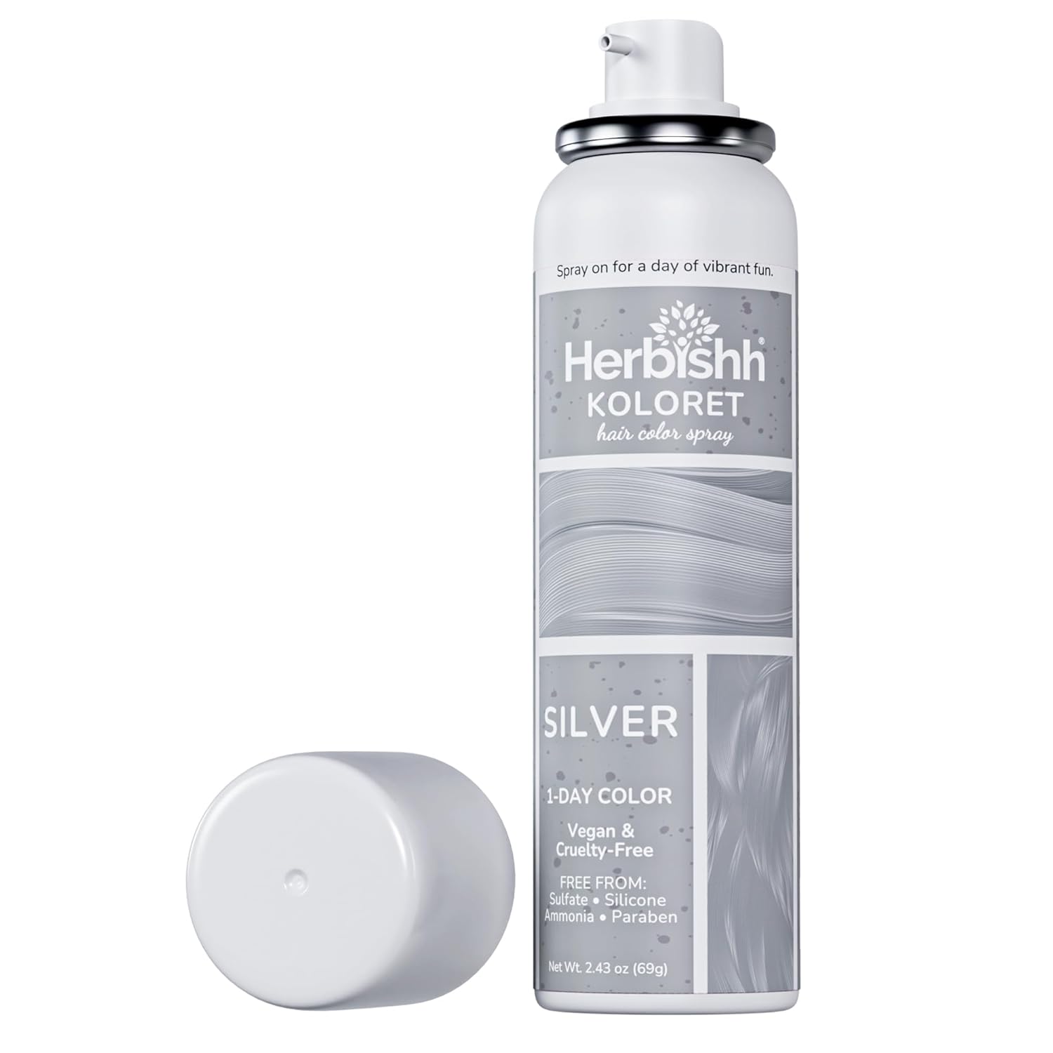 I’m Herbishh Koloret’s Pastel Silver Hair Color Spraythe easy, temporary hair color silver you can spray on and wash out whenever you please.