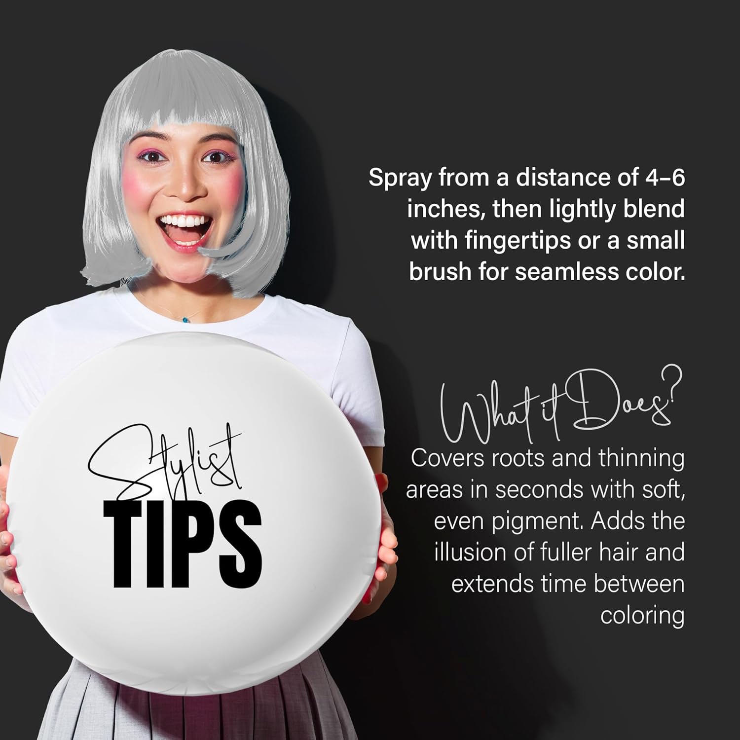 Whether you want to add highlights, ombré, or full-on silver glam, the precise spray nozzle makes application easy and mess-free. Perfect for anyone seeking a non-permanent, pastel silver hair dye effect with zero commitment or damage, this is the best way to get that silver hair color trend on your own terms.