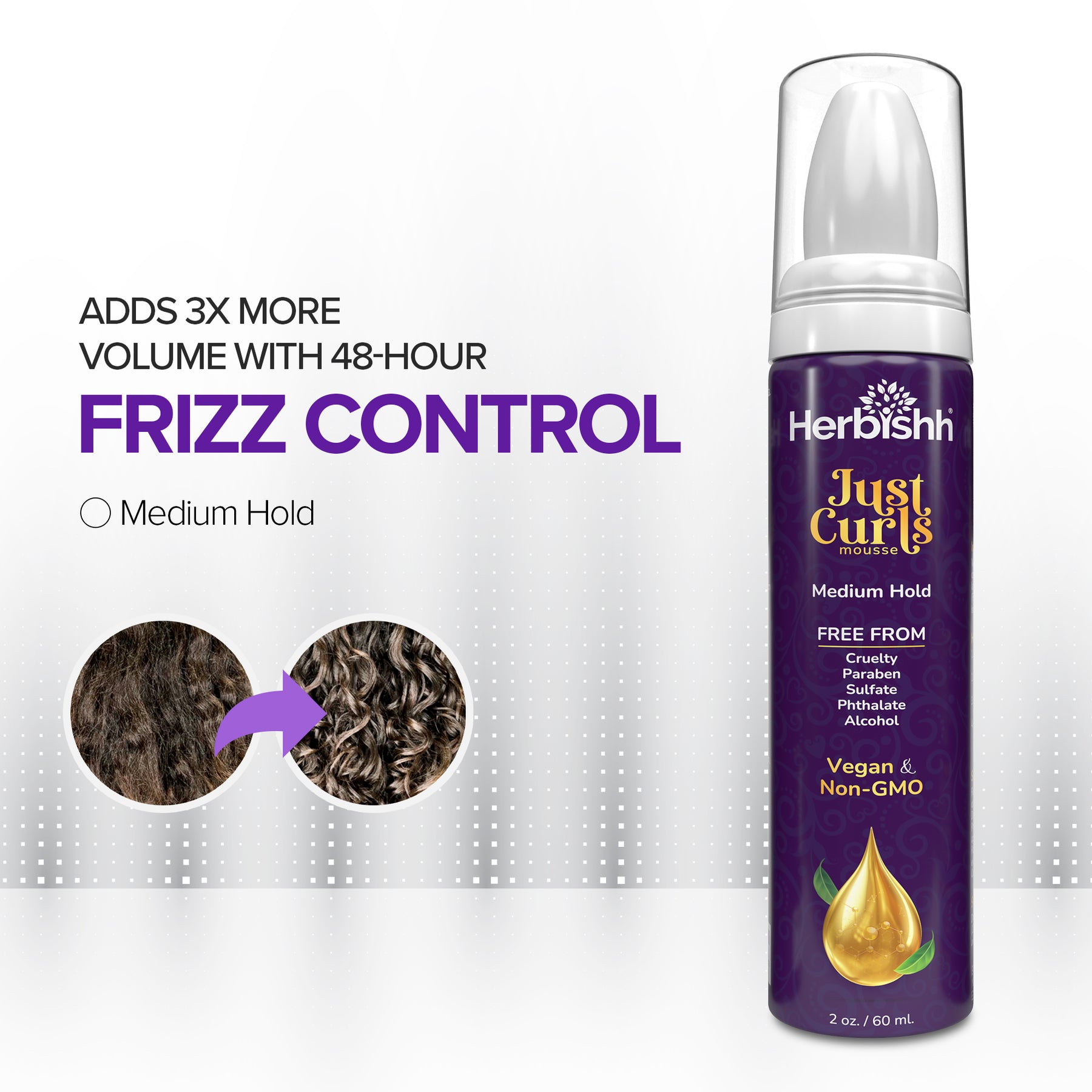 Herbishh Just Curls Hair Setting Mousse is designed specifically for wavy, curly, and textured hair types, offering flexible hold, soft definition, and deep moisture all in one easy-to-use foam formula.