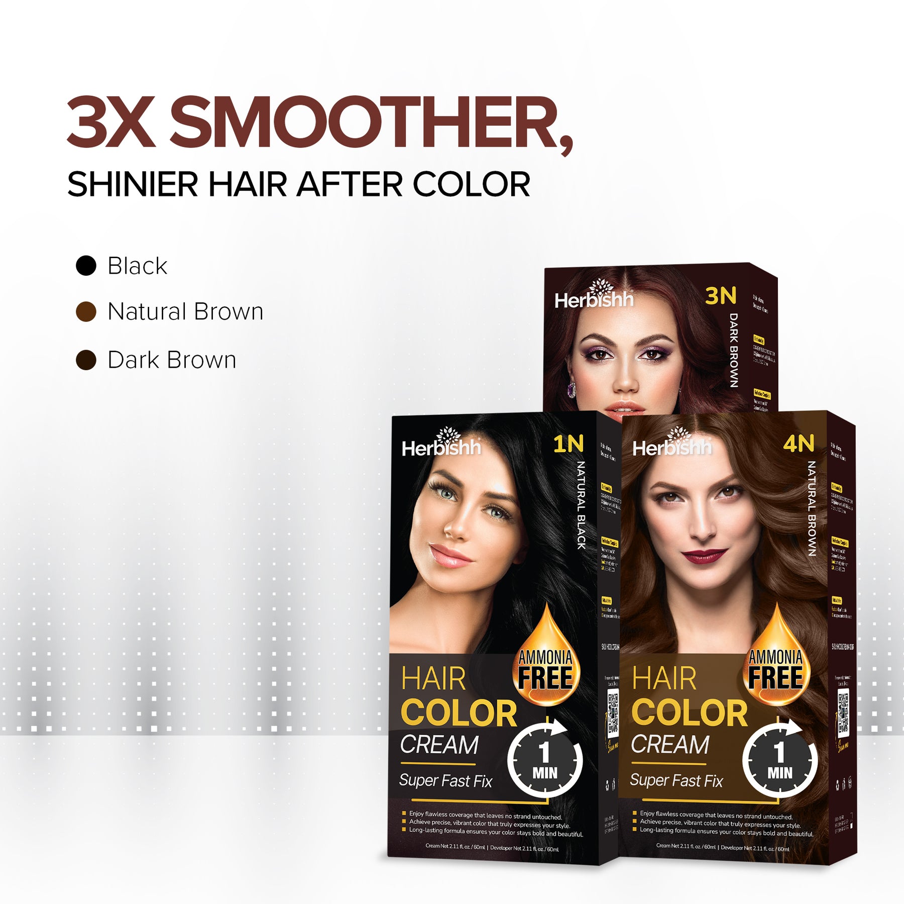 Herbishh Rapid Infusion Hair Color Cream  3 shades