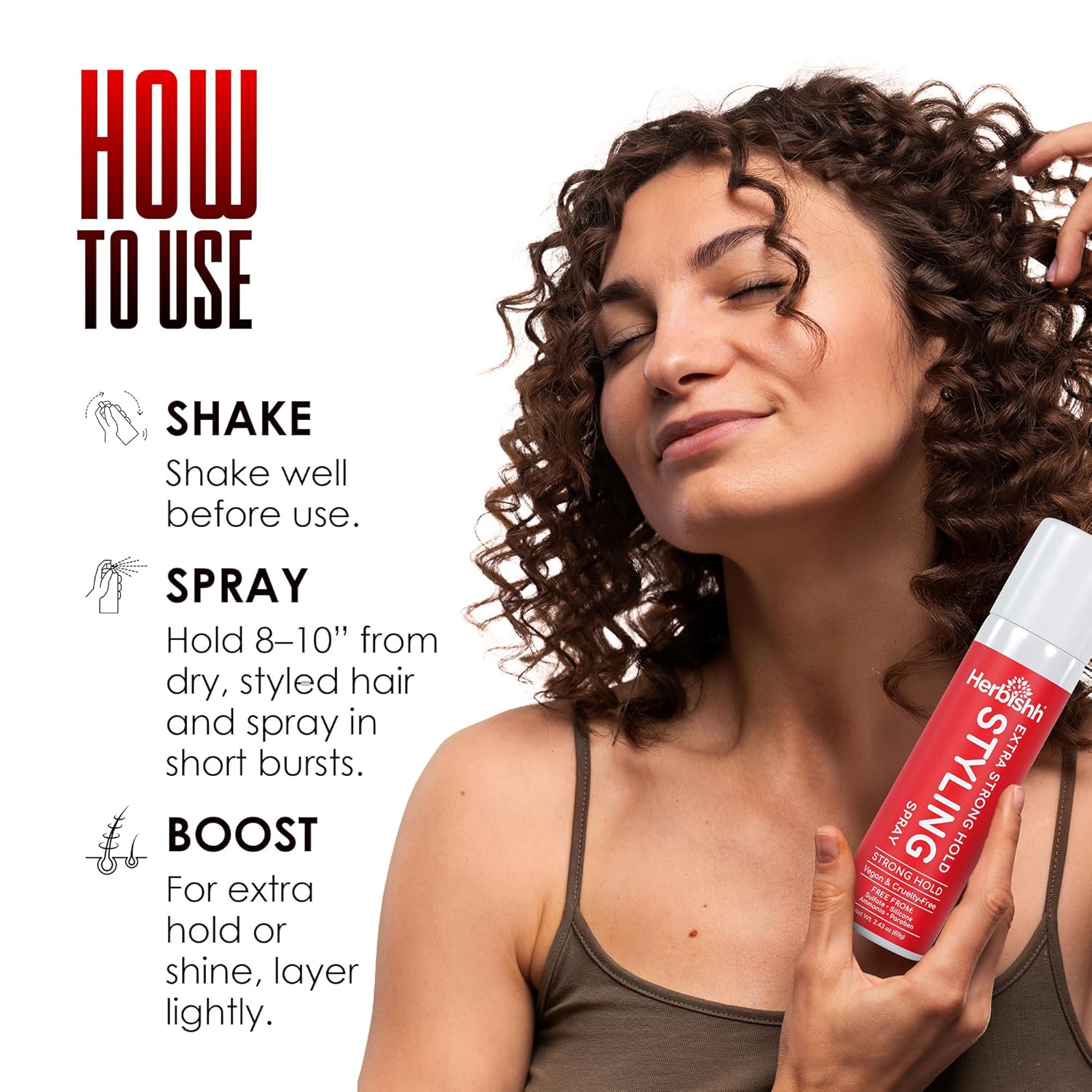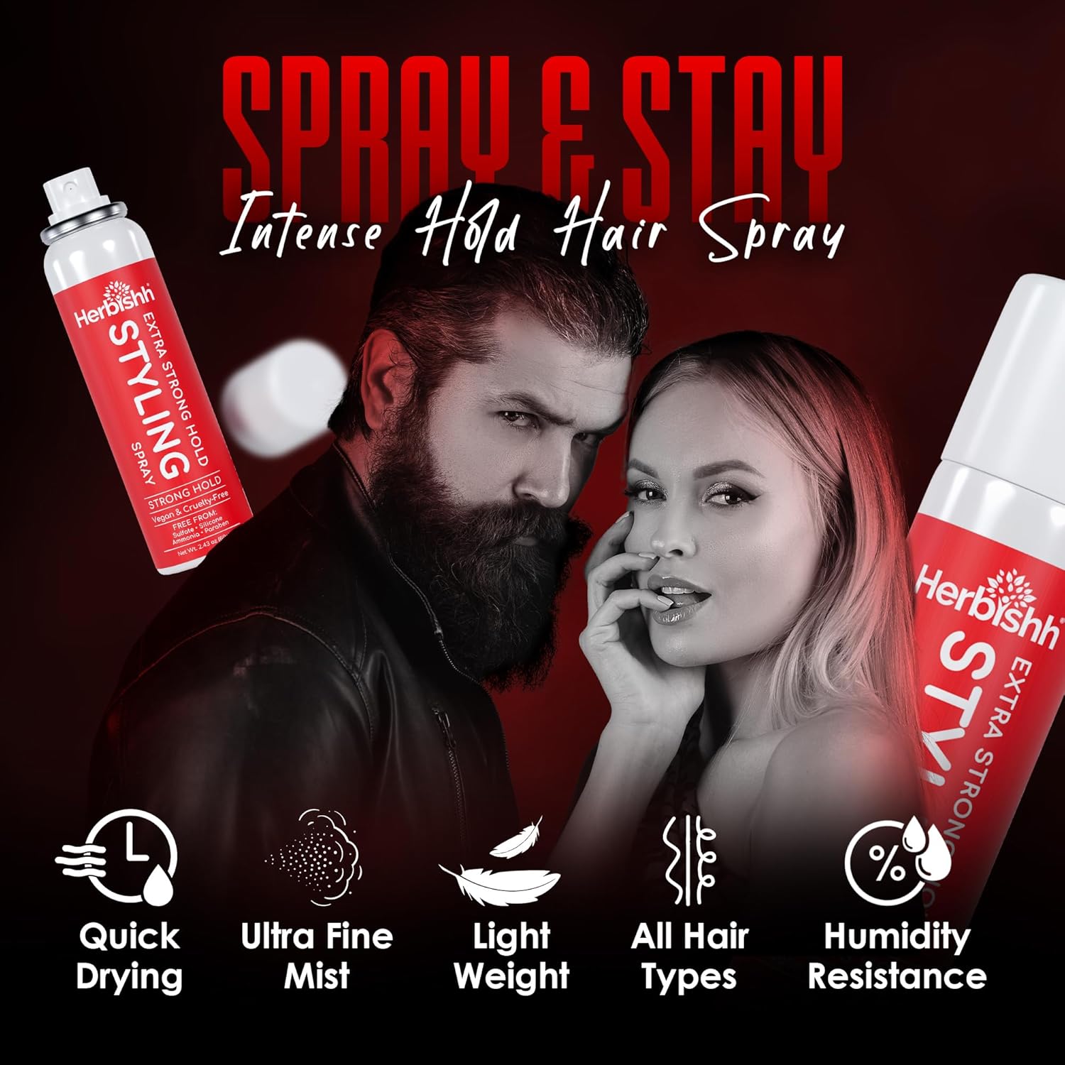 I’m your new favorite Herbishh’s Extra Strong Hold Hair Styling Spray and I give you a quick-drying, invisible hold that actually lasts.