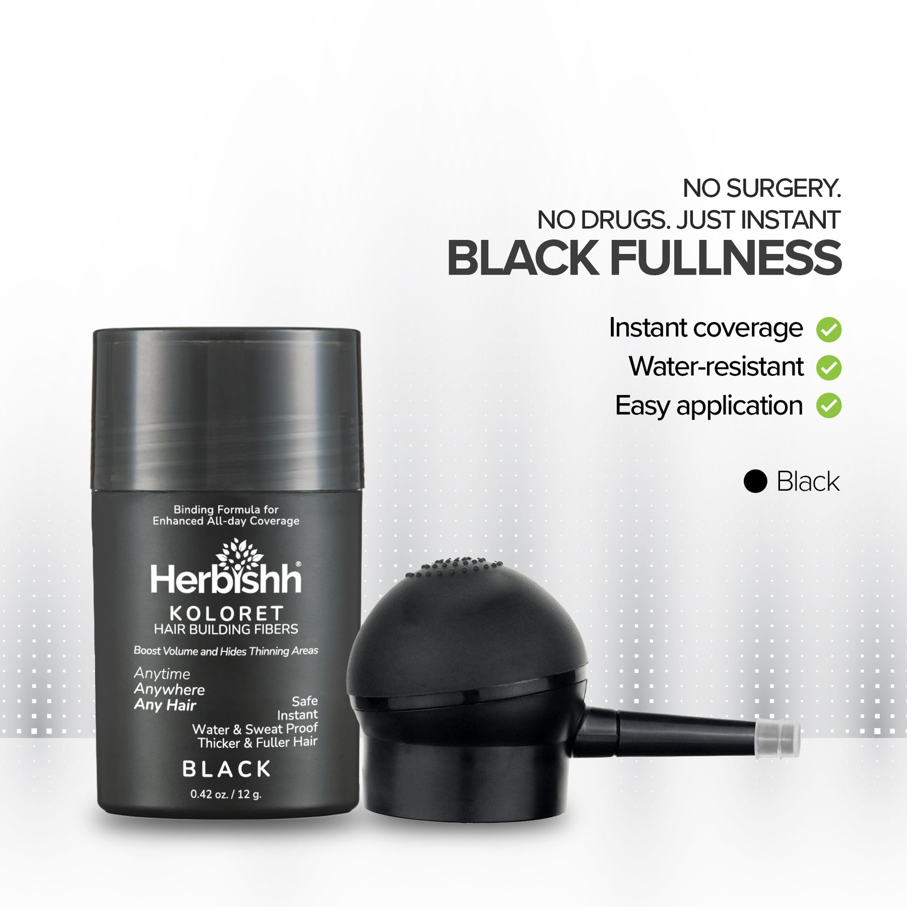 Black- Herbishh Koloret Hair Building Fibers –12 gm
