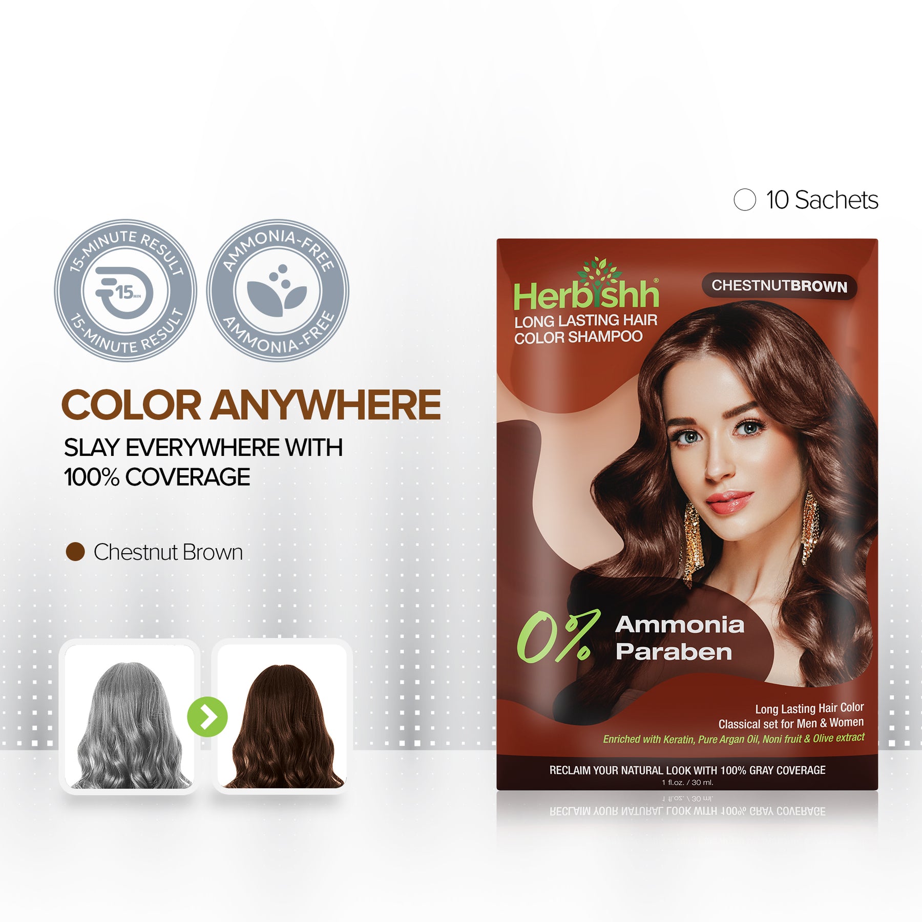 Chestnut Brown Color Shampoo 10 Sachets-Herbishh