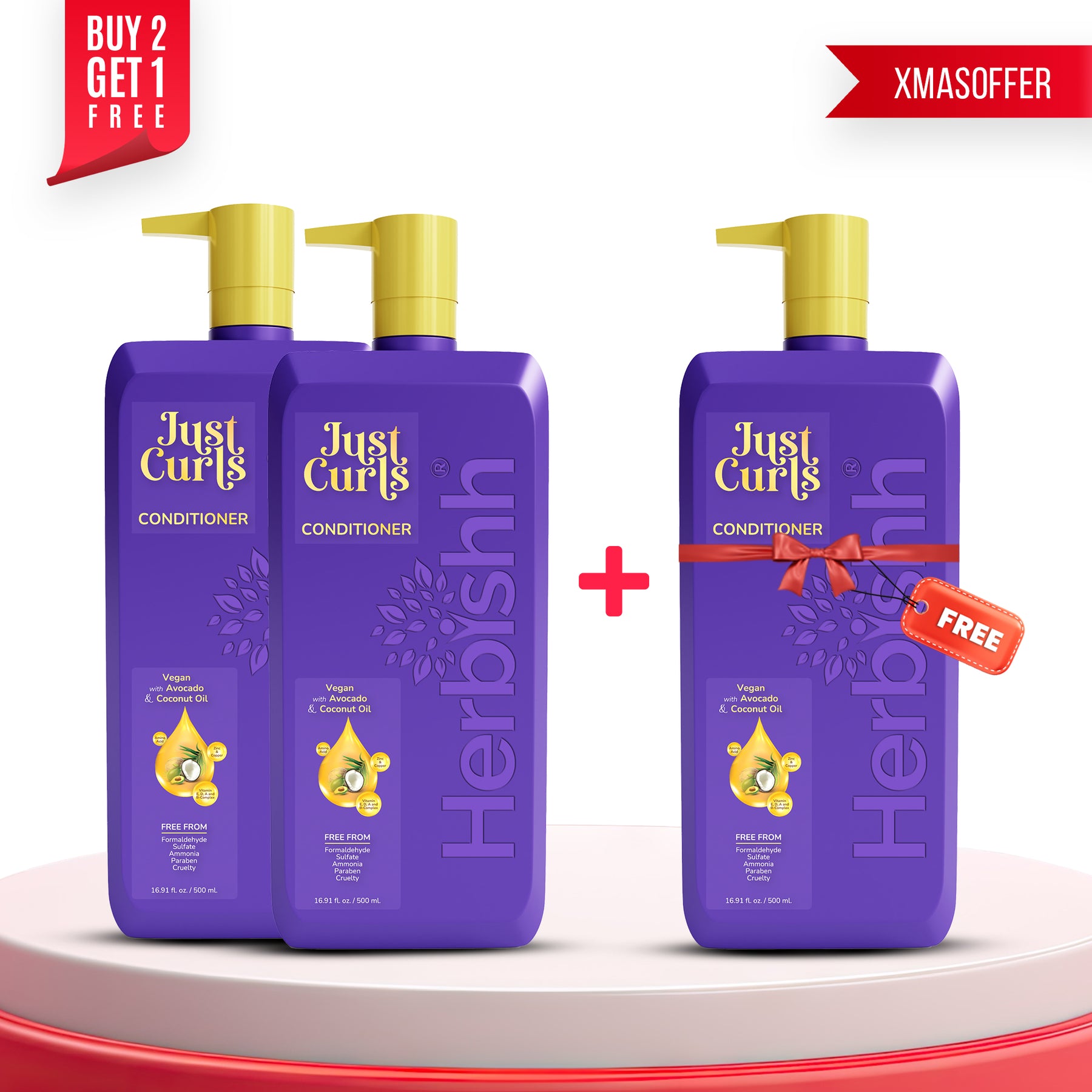 A: For best results, condition your curls 2–3 times a week using the Just Curls Conditioner or the best deep conditioner for curly hair from Herbishh. Deep conditioning once a week helps revive dull curls,