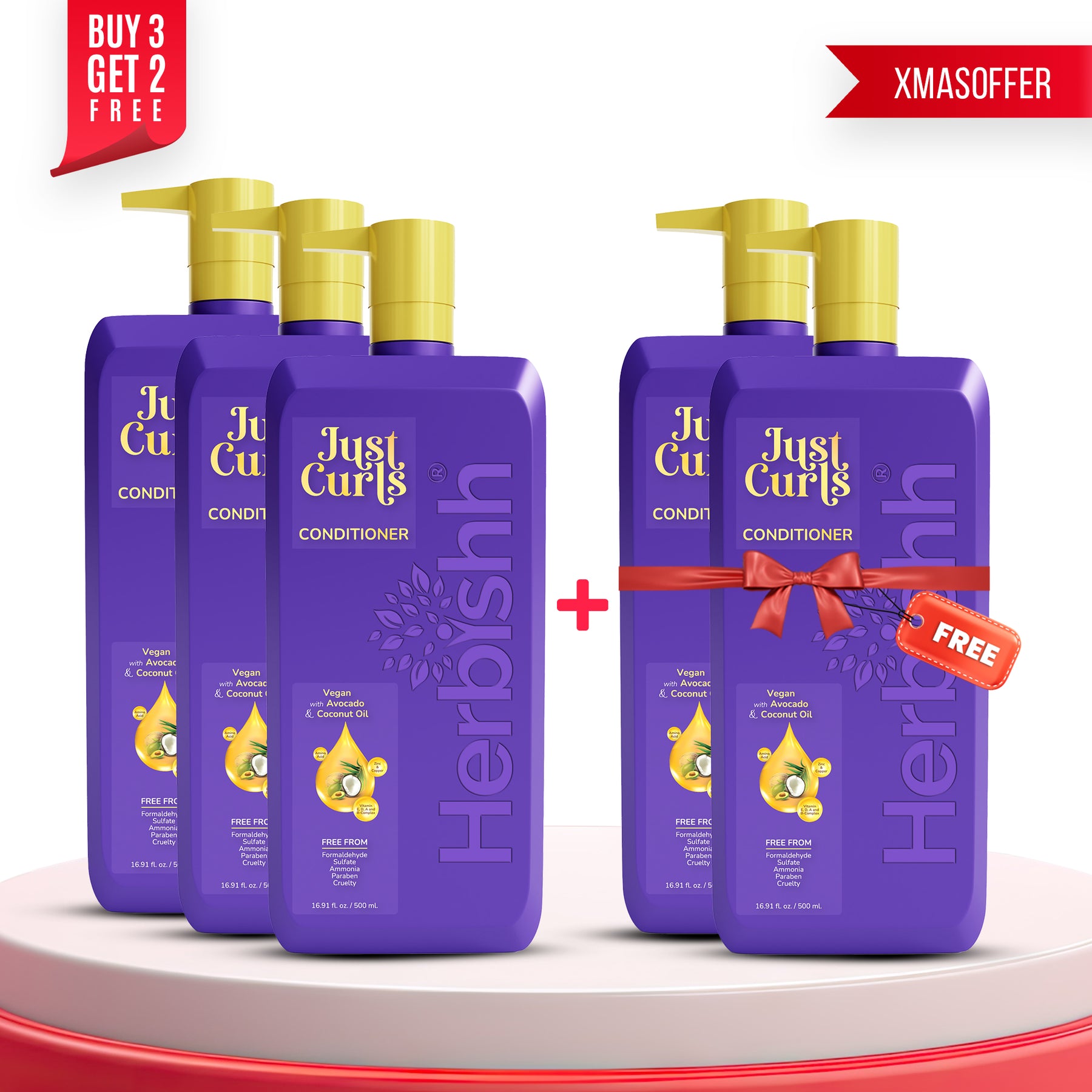 A: For best results, condition your curls 2–3 times a week using the Just Curls Conditioner or the best deep conditioner for curly hair from Herbishh. Deep conditioning once a week helps revive dull curls,