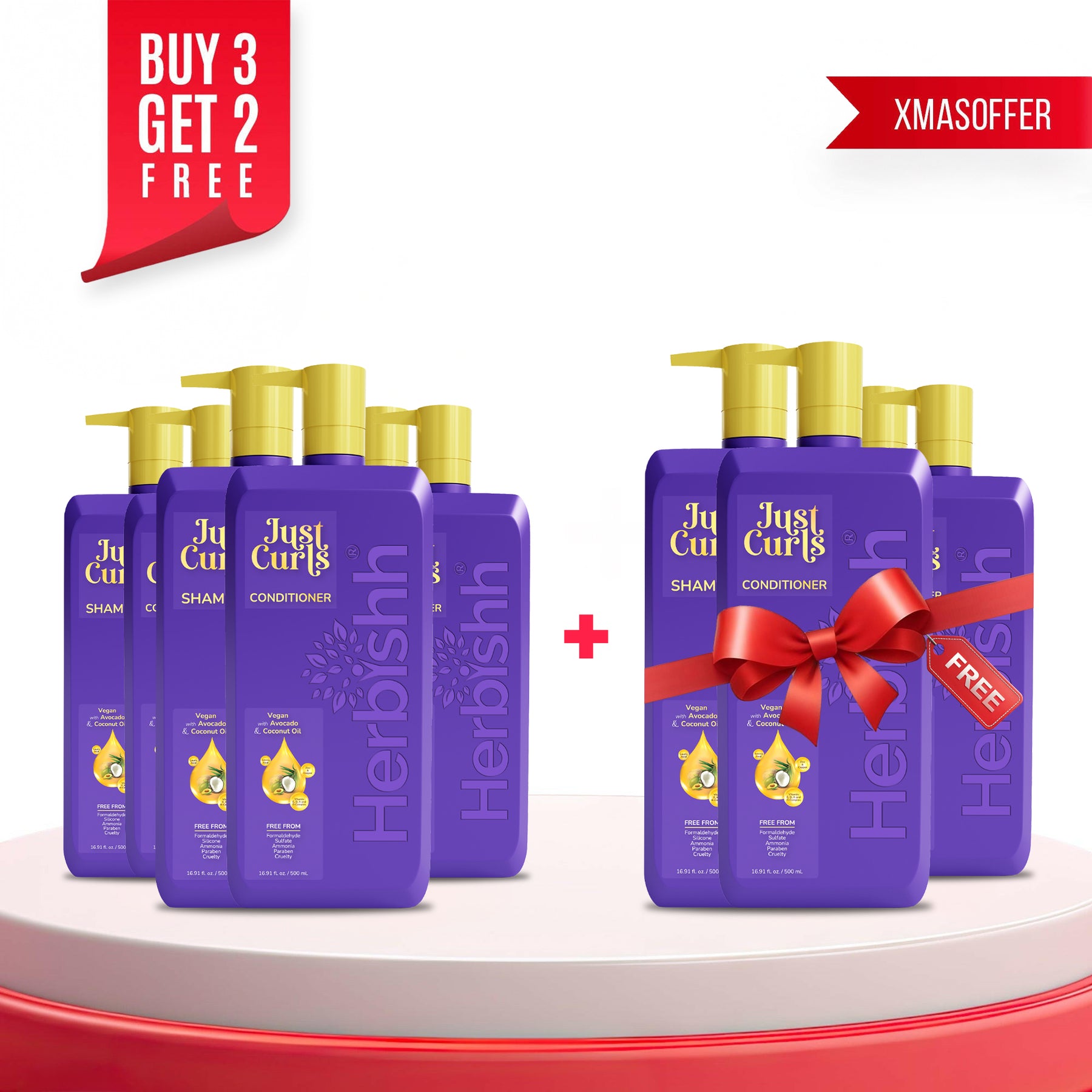 Buy-3 Get-2 Just Curls Shampoo & Conditioner Set - Herbishh --CHRISTMAS OFFER Health & Beauty.